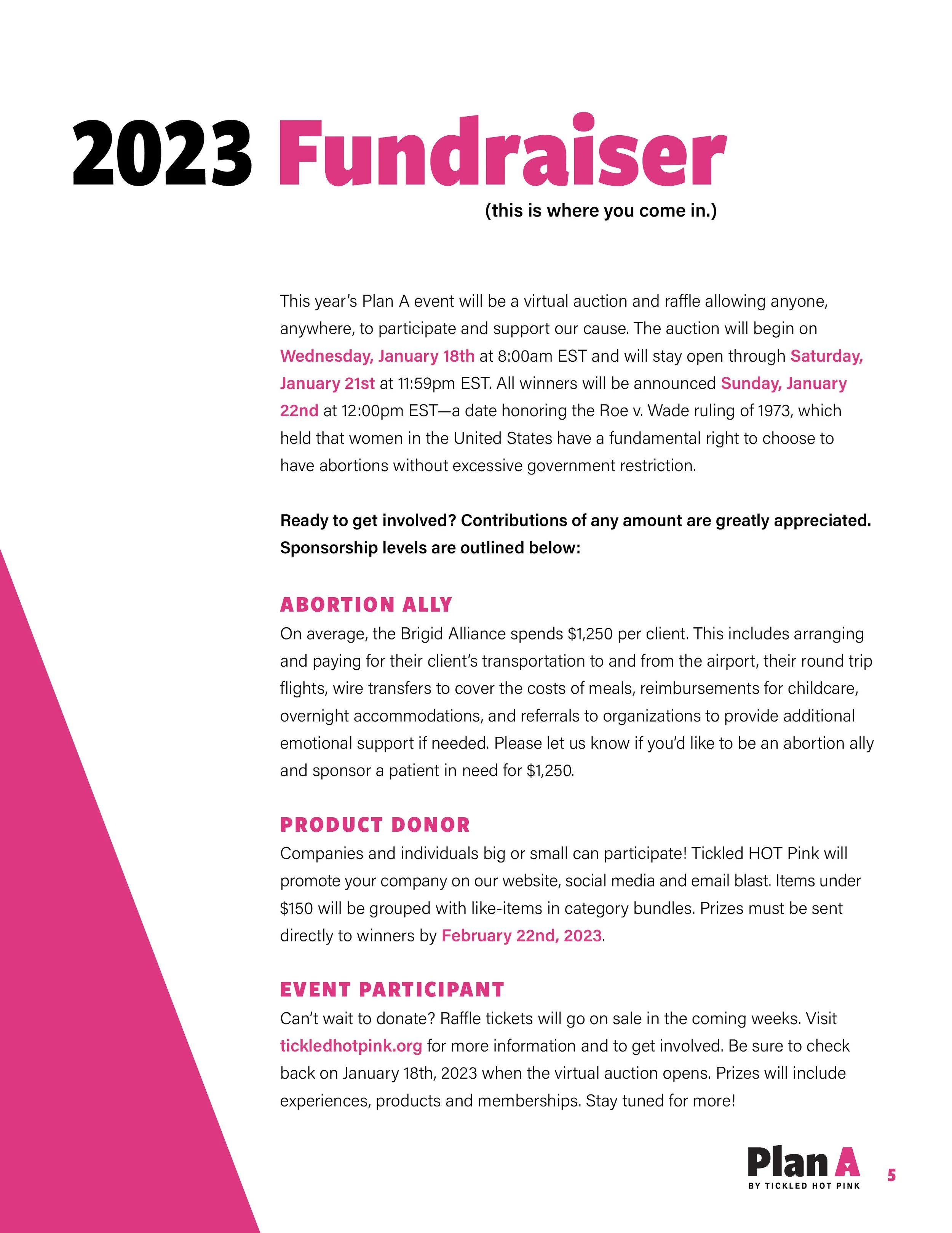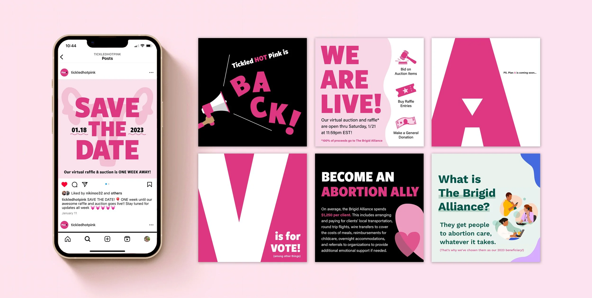 Tickled HOT Pink is a 501c3 organization founded by sisters, Niki and Danielle Dankner in the early 2000s. Their annual event, “Plan A”, has raised over $1,000,000 for various women’s health issues. Events were put on pause during COVID but with the recent Supreme Court decision to overturn Roe v. Wade, the Tickled HOT Pink planning committee came together with a renewed sense of urgency—their next event would raise funds for abortion access. But before they could go public with their 2023 fundraiser plans, they needed a brand refresh.